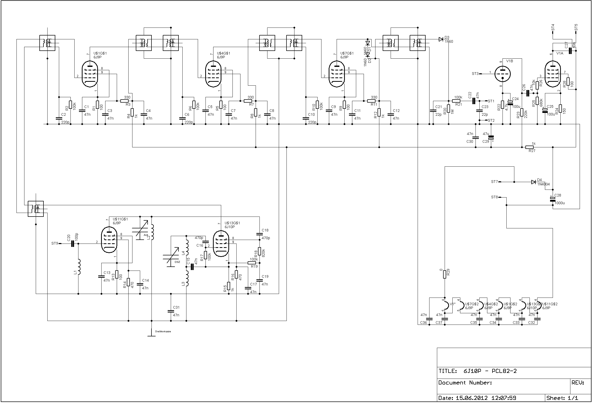 An Stelle der ECL82 ist eine PCL82 verbaut. So kann die gesamte Schaltung aus einem 48V-Trafo gespeist werden.