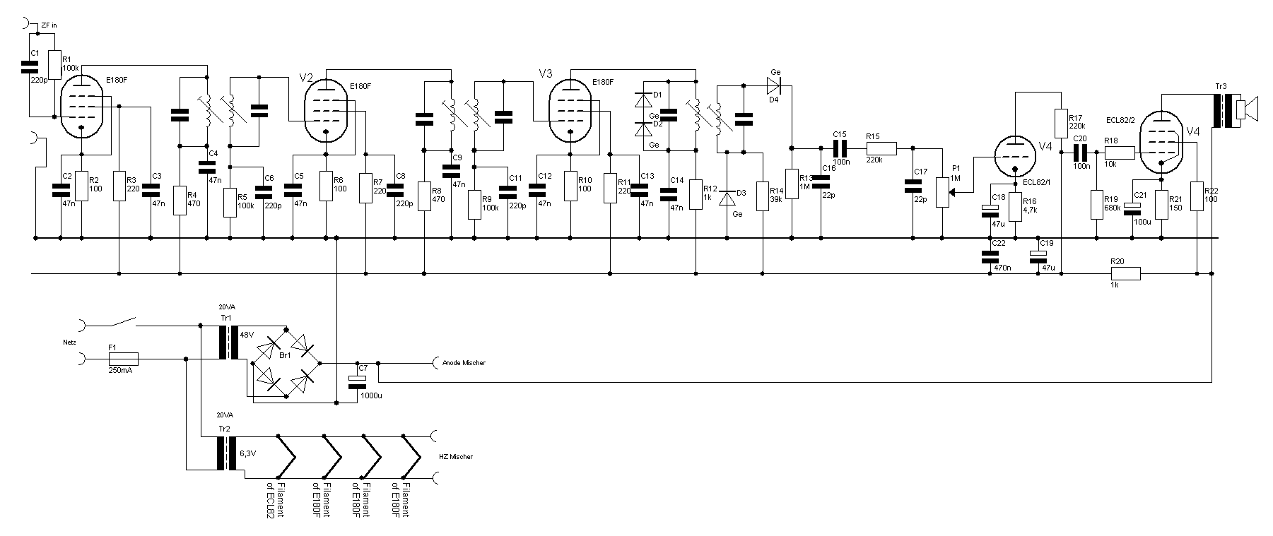 Der Mischer benutzt die Dekal-Röhre ECH200. Sie